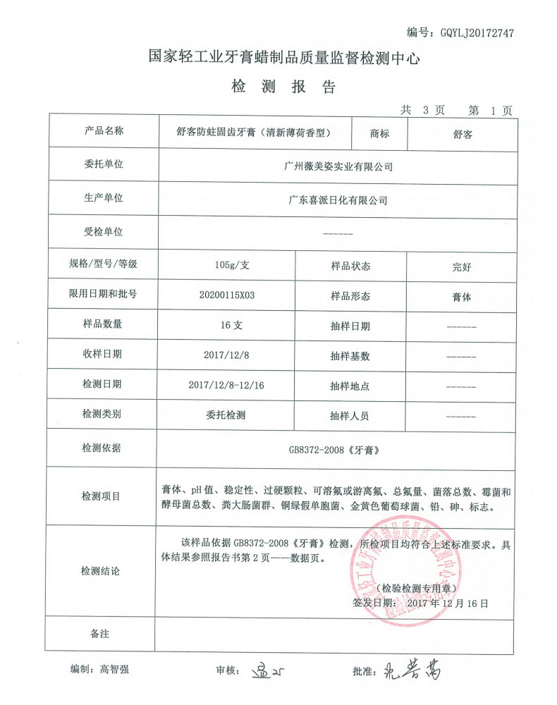 舒客防蛀固齿牙膏清新薄荷味105g