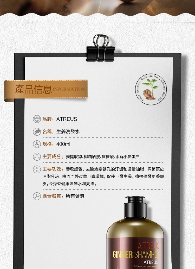 ·完税进口·泰国Atreus生姜洗发水400ml/瓶【完税商品】