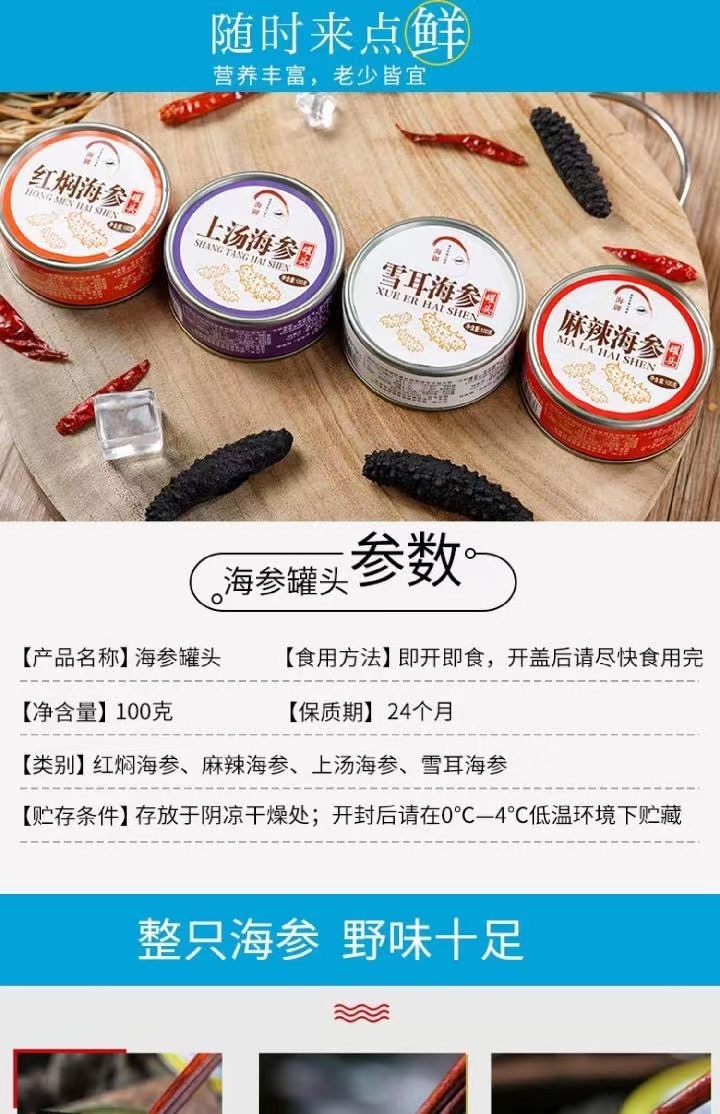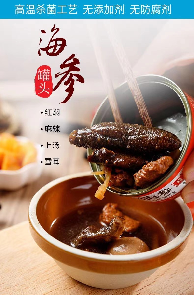·国内贸易· 红焖海参即食罐头 4罐 400g(佛跳墙麻辣海参2罐+上汤雪耳海参2罐)