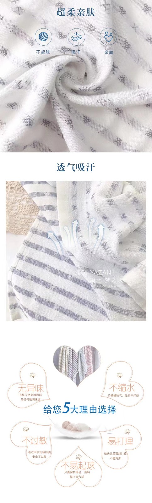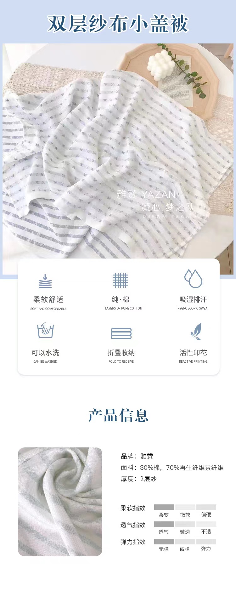 国内贸易 雅赞夏季双层纱布印花毯薄款纱布单小盖被透气吸汗空调房被毛巾被