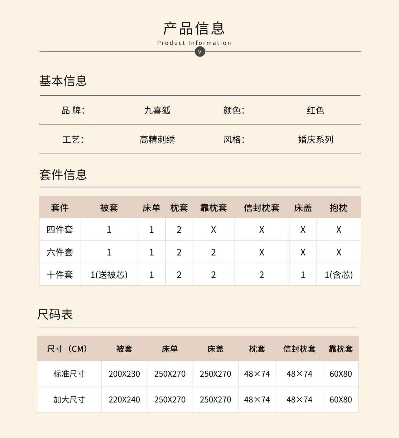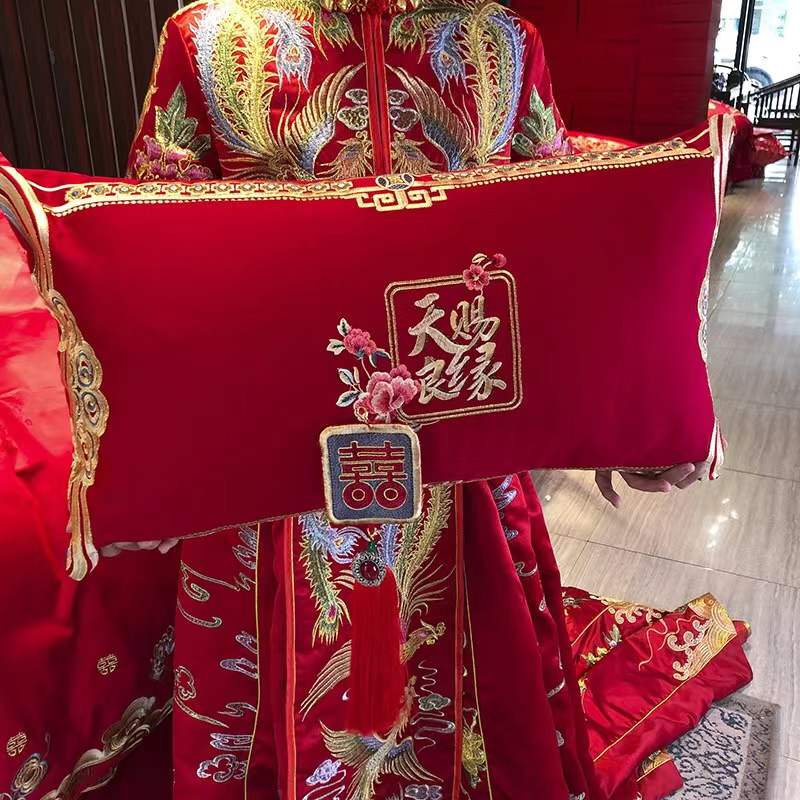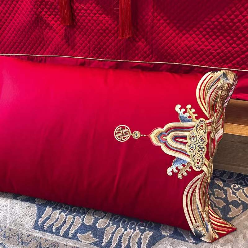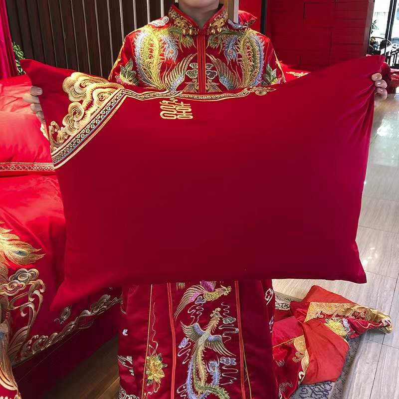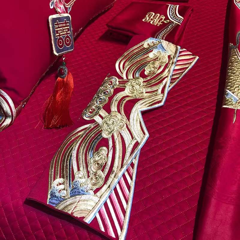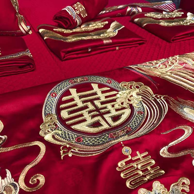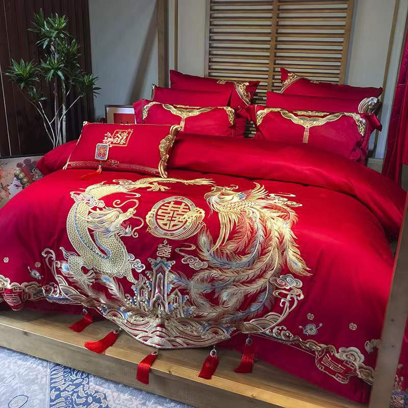 国内贸易 九喜狐婚庆家纺结婚四件套被婚床上用品贡缎提花龙凤刺绣十件套(200*2300)