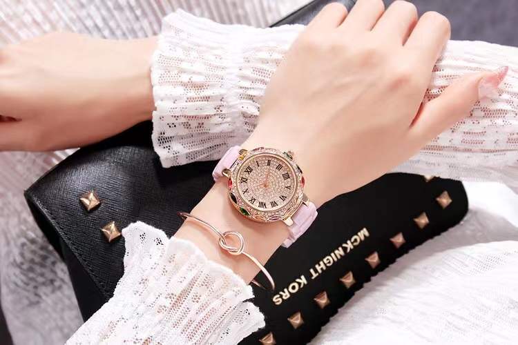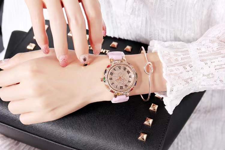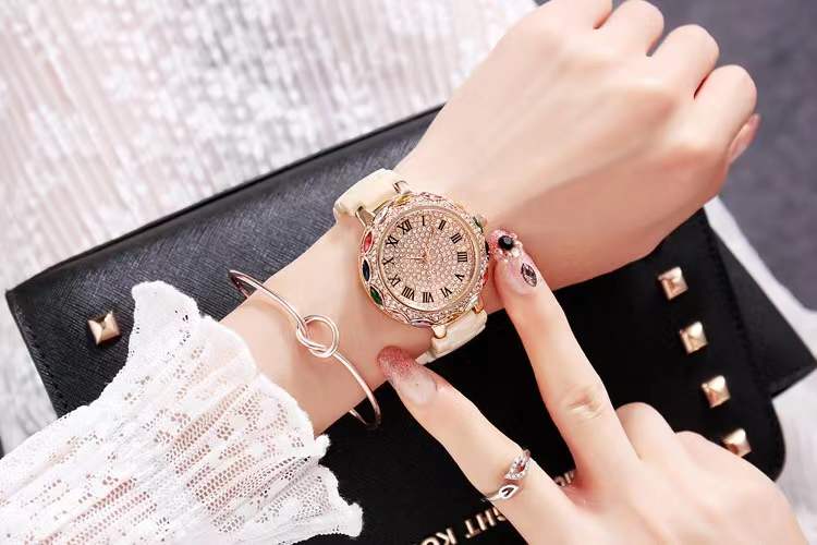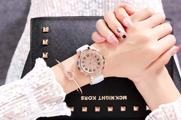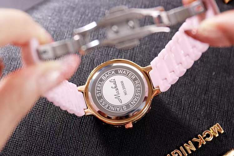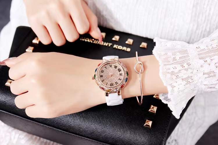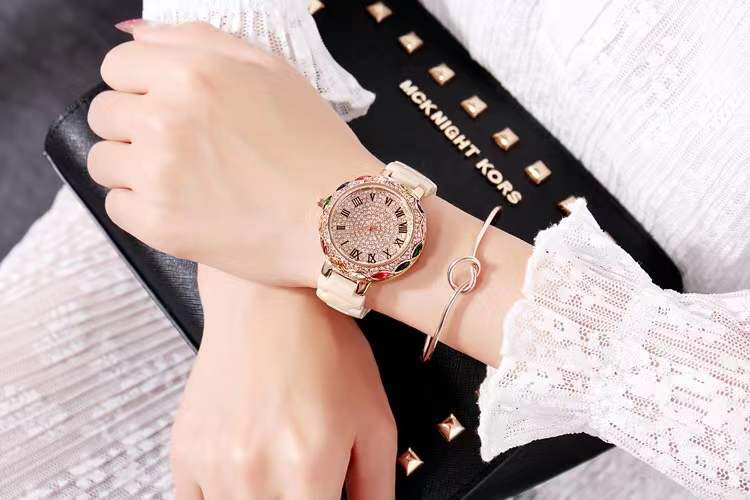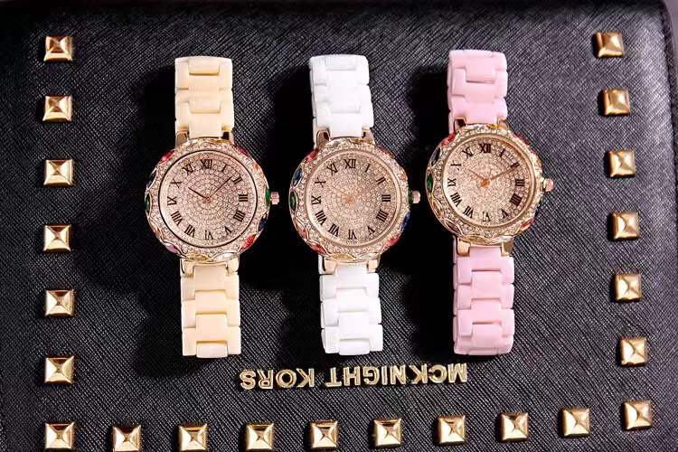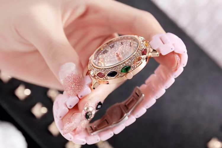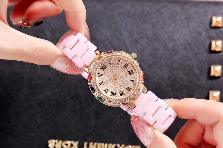 国内贸易 潮牌玛莉新款 陶瓷表带女士时尚耐用轻奢七彩满钻个性手表