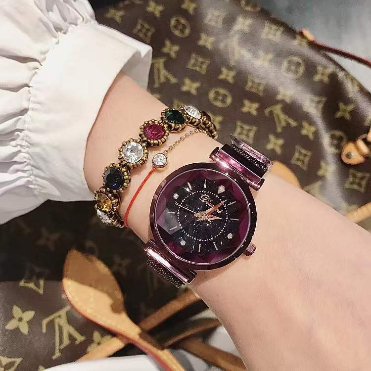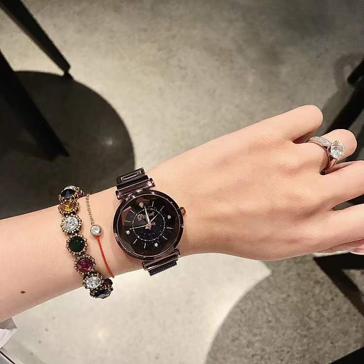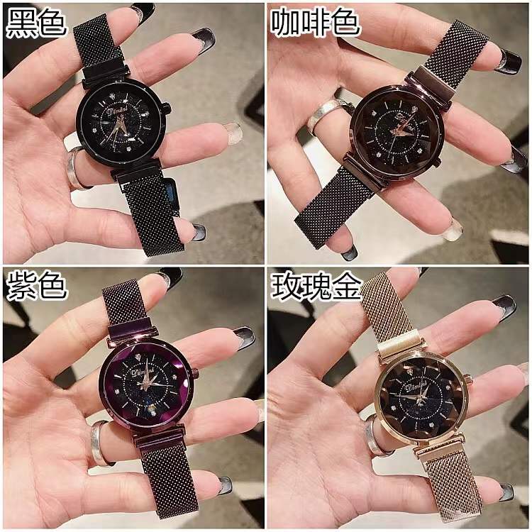 国内贸易 帝米妮星空底盘个性时尚潮流女士手表懒人吸铁表带女款女表