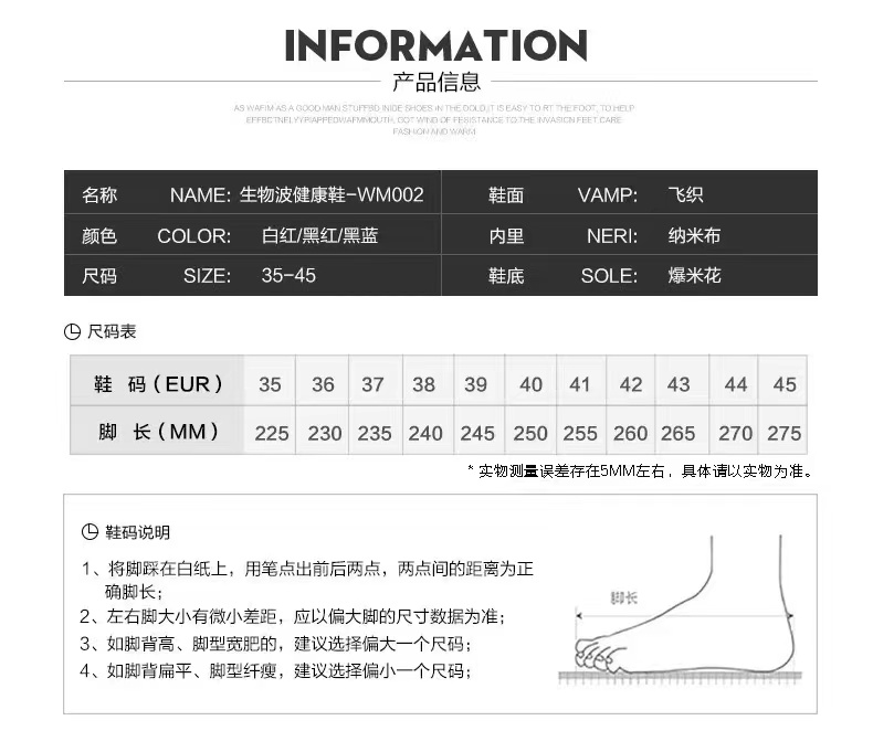 国内贸易 生物波健康鞋VM-002(女鞋)(下单备注男女同款备注鞋码)