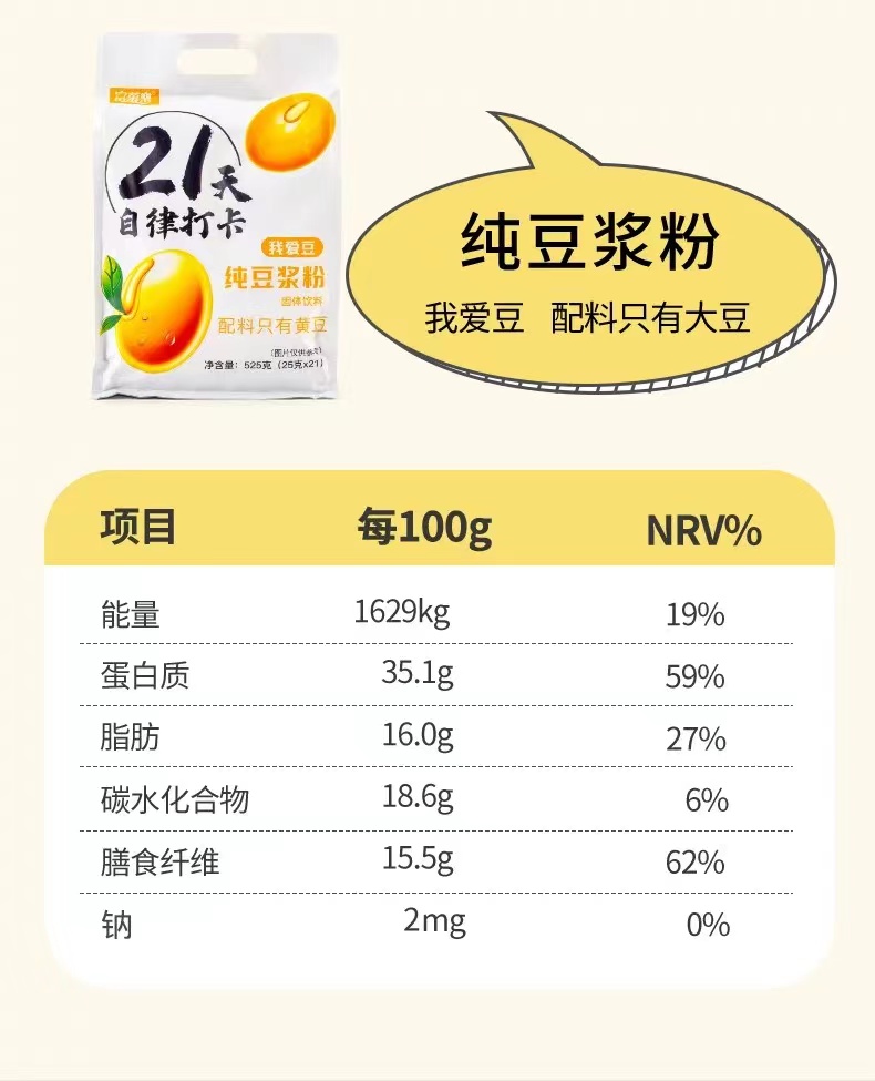 国内贸易 21天自律打卡纯豆浆粉无蔗糖代餐营养早餐冲饮速食小包(拍一发二)